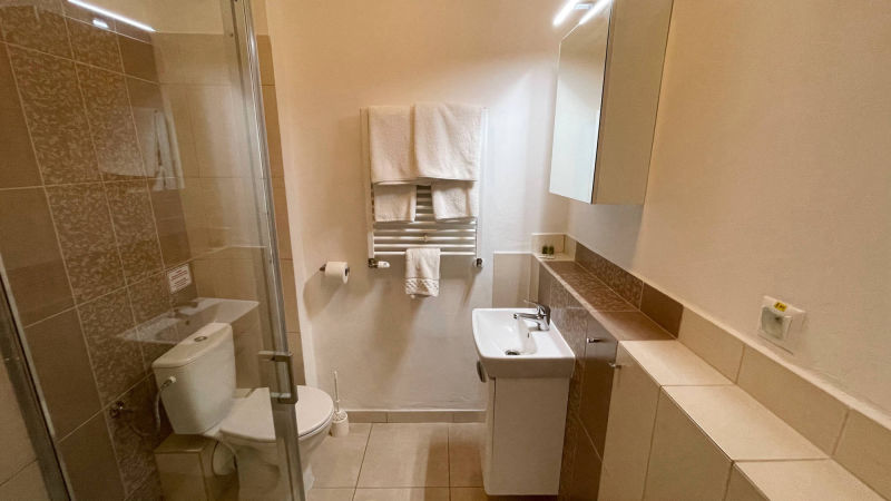 Dvojizbový apartmán "FAMILY" je vhodný pre rodiny, vybavený v štandarde bez možnosti prístelky s vlastnou kúpeľňou so sprchovým kútom a WC. Apartmán je vybavený kuchynkou.