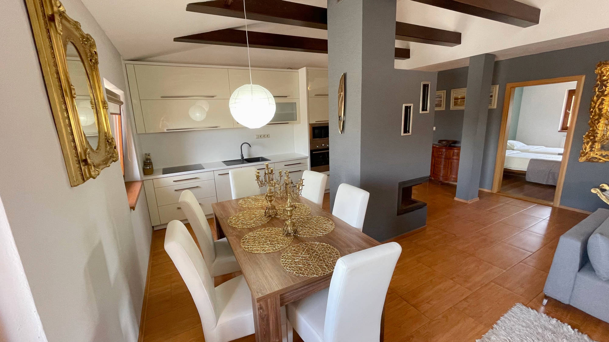 Trojizbový apartmán "LUXURY" s rozlohou 90 m2 ponúka nadštandardné ubytovanie pre 4 osoby s možnosťou prístelky. 1x manželská posteľ , 2x oddelené dvojlôžko, plne zariadená obývacia miestnosť a kuchyňa, kúpeľňa a samostatné WC, plus vlastný balkón.